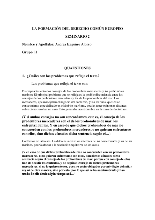Este es el Seminario 1 de los tres realizados durante la evaluación en la asignatura La formación del Derecho Común Europeo con el profesor Javier López Goicoechea.