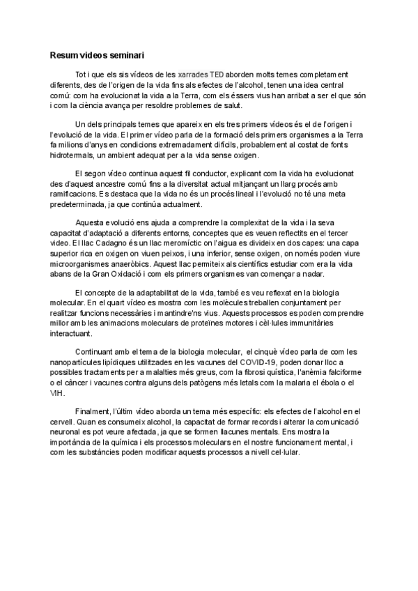 He publicado nuevos trabajos de 1º Biología General: Seminaris: Resum Xarrades TED 1