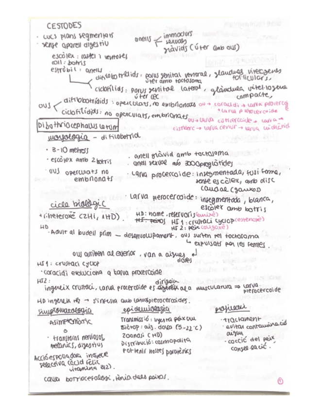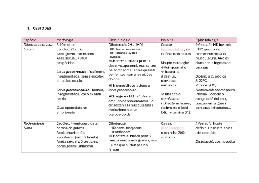 He publicado nuevos apuntes de 1º Parasitología: taula-resum-cestodes.pdf