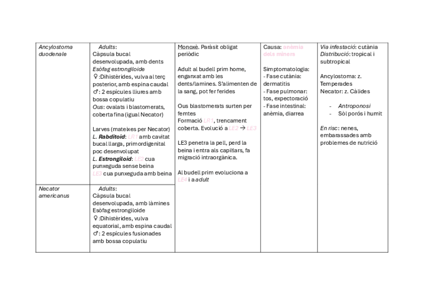 He publicado nuevos apuntes de 1º Parasitología: apunts-resum-taula-nematodes.pdf