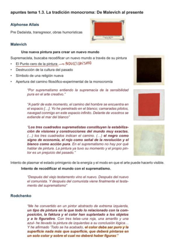 Apuntes del tema 1.3. en el que hace un recorrido por las pinturas monócromas