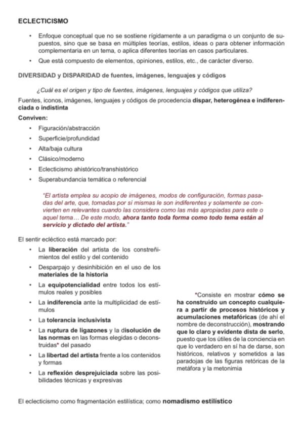 Pintura postmoderna; Principales claves pictóricas: fragmentación, cita, seriación, superposición, ironía, eclecticismo y nomadismo estilístico