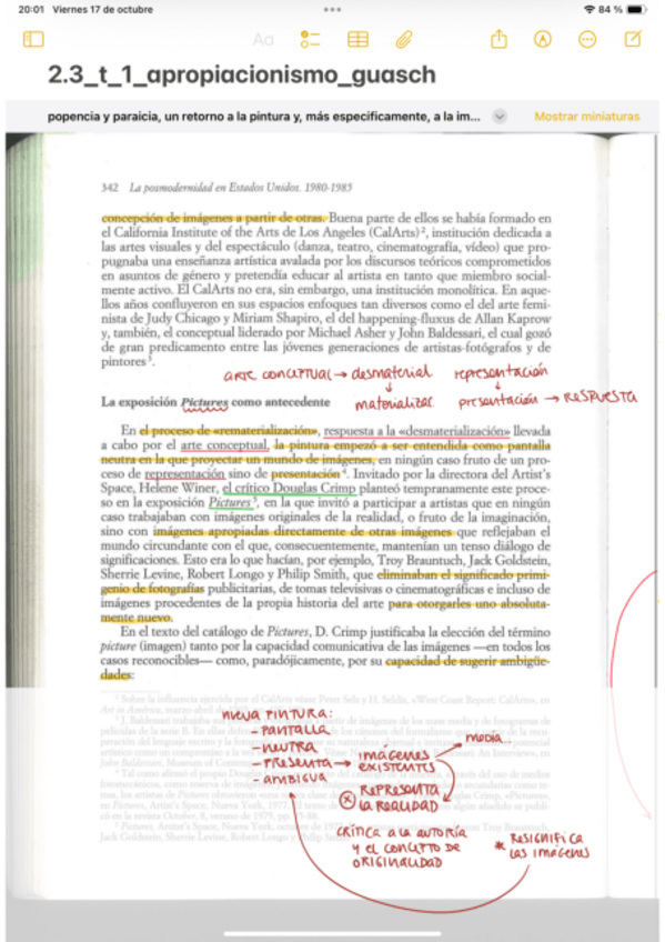 Texto subrayado El Apropiacionismo de Guasch. Del tema de la pintura postmoderna, 2.3. Apropiacionismo y Neoabstracción