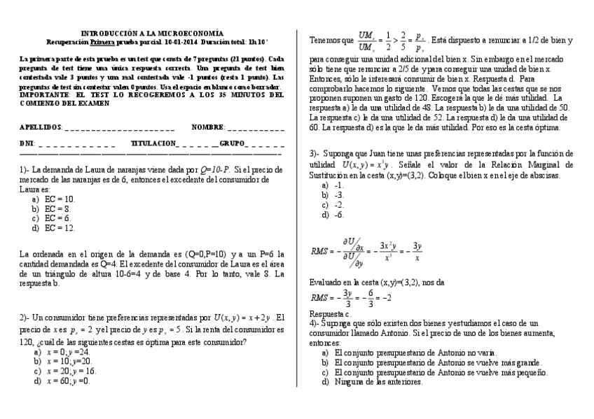 EXAMENES MICROECONOMÍA