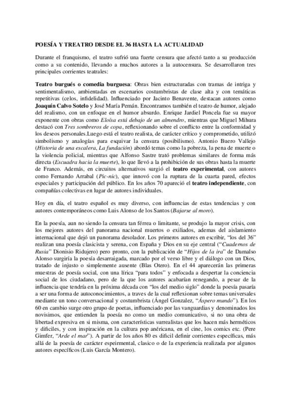 Apuntes de literatura POESÍA Y TREATRO DESDE EL 36 HASTA LA ACTUALIDAD