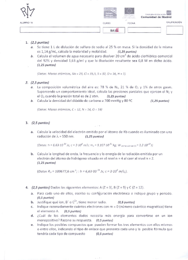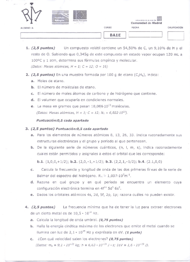 Exámenes corregidos de 1º bach