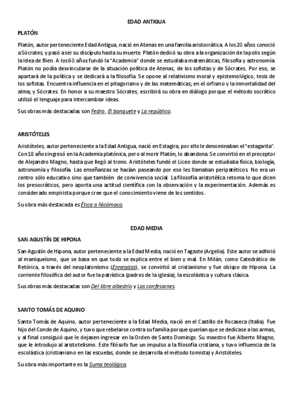 Contextos de autor para cada autor del temario de Historia de la Filosofía