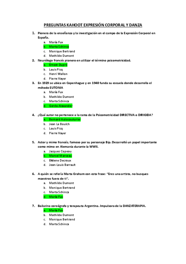 Preguntas pruebas de progreso clase de Fisiología del Ejercicio I