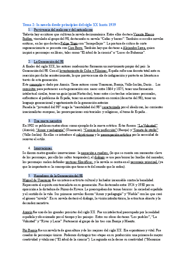 Literatura tema 2: novela desde XX hasta 1939
