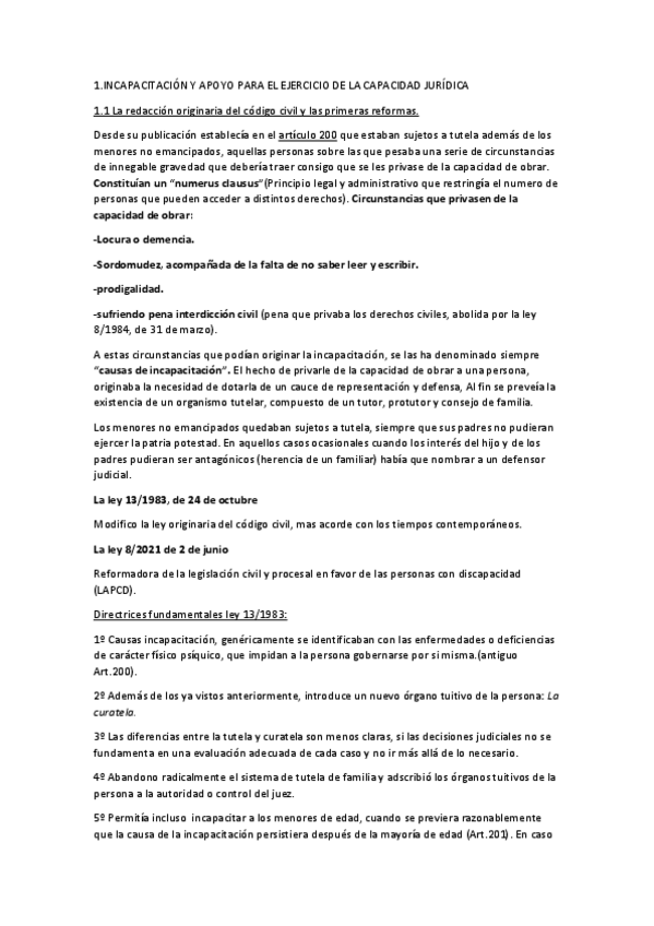 Apuntes completos tema 4: Capacidad jurídica, discapacidad y cargos tuitivos