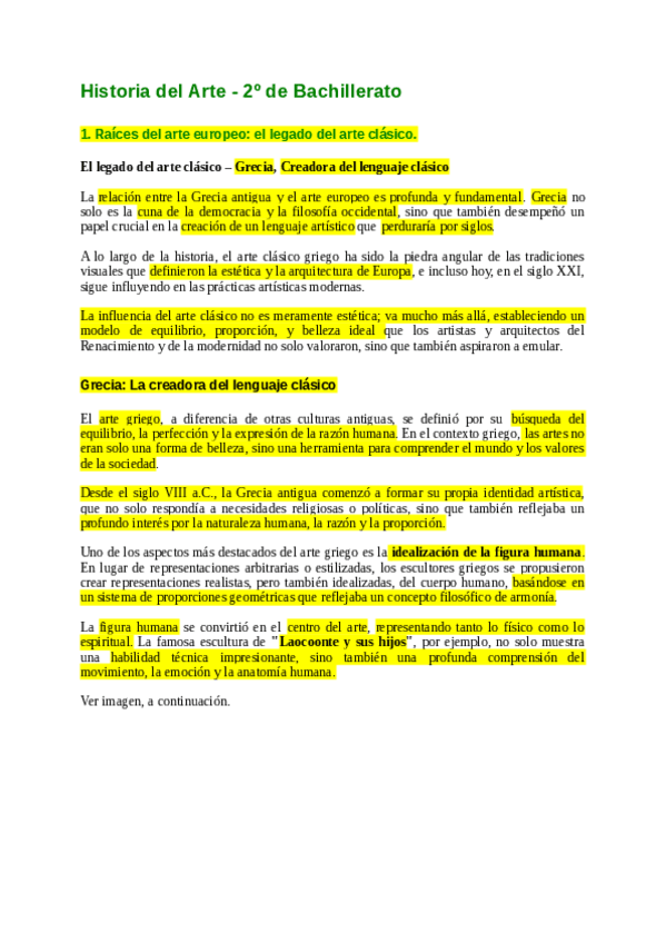 Apuntes Historia del arte Segundo de Bachillerato - Grecia creadora lenguaje clásico