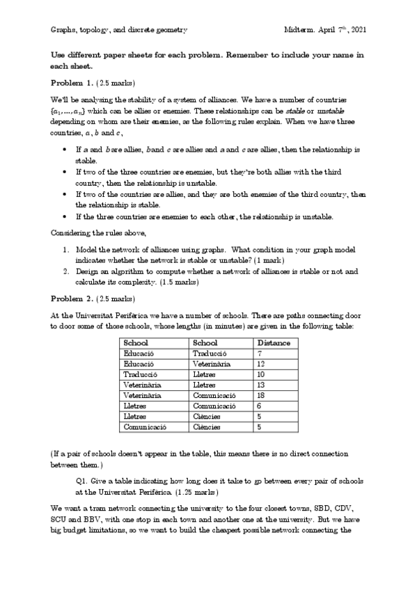 He publicado nuevos examenes de 1º Grafs, Topologia i Geometria Discreta: Examens Parcials