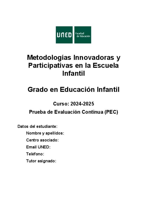 He publicado nuevos pec de 1º Metodologías Innovadoras y Participativas en la Escuela Infantil: NOTA-10-PEC-1-METODOLOGIAS.pdf
