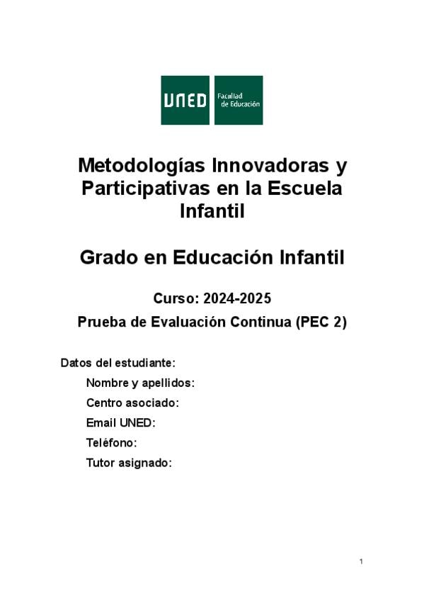 He publicado nuevos pec de 1º Metodologías Innovadoras y Participativas en la Escuela Infantil: NOTA-10-PEC-2-METODOLOGIAS.pdf