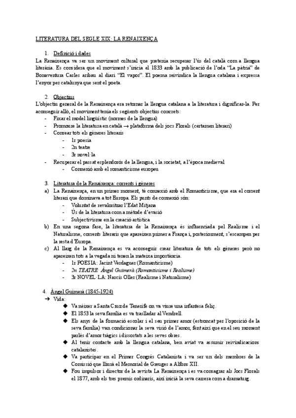 Apuntes para examen parcial de catalán sobre la Renaixença y Àngel Guimerà (primero de bachillerato de las Islas Baleares)