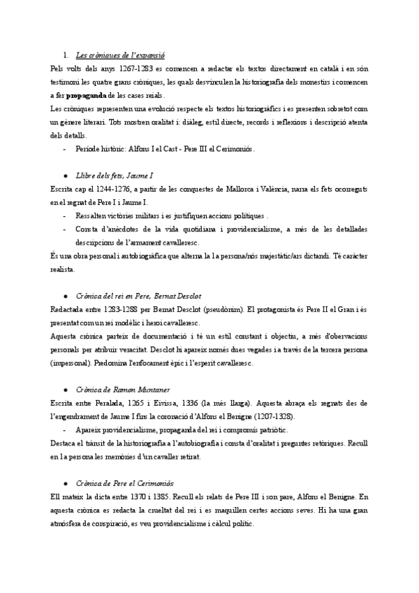 Apuntes para examen parcial de catalán (primero de bachillerato, Islas Baleares) sobre las crónicas medievales