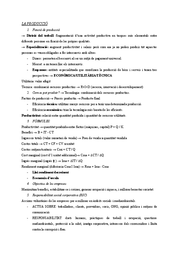 Apuntes para examen parcial de economía (primero de bachillerato, Islas Baleares) sobre la producción