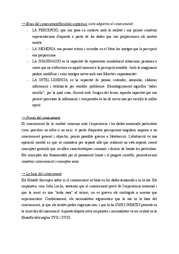 Apuntes de filosofia (primero de bachillerato, Islas Baleares) sobre: LA TEORIA DEL CONEIXEMENT (la teoría del conocimiento).