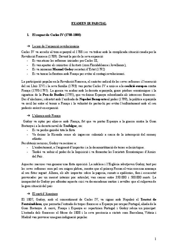 Resumen en catalán del primer tema de historia, carlos IV - década ominosa Apuntes muy completos para llegar al 10