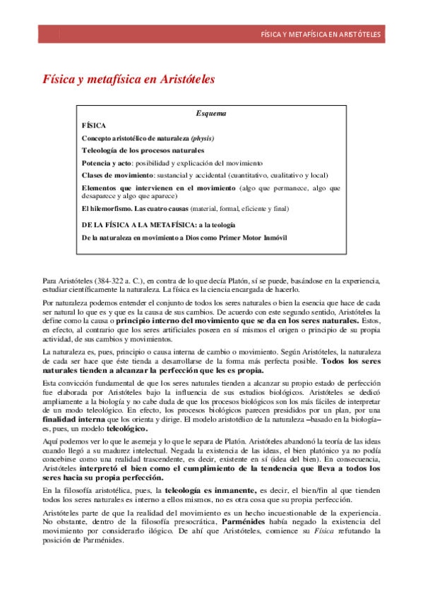 Apuntes completos bachillerato y selectividad de Aristóteles (Filosofía)