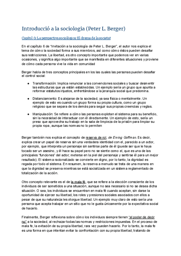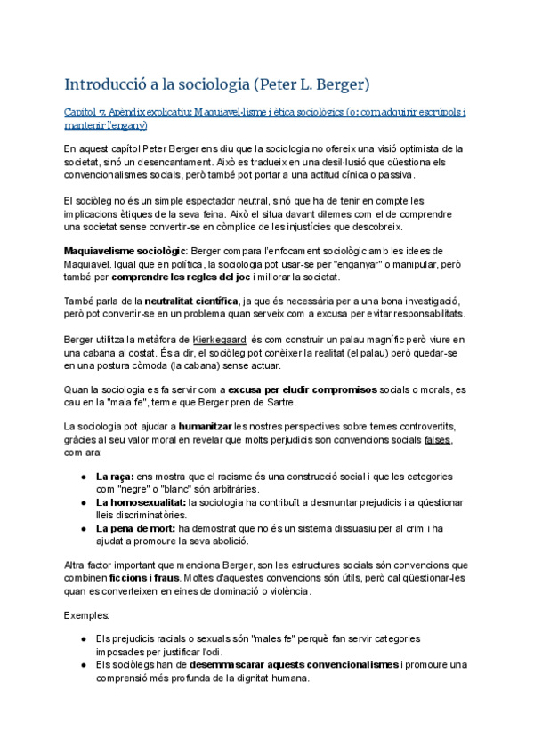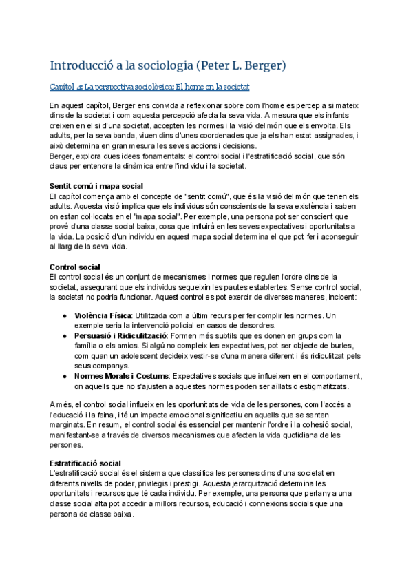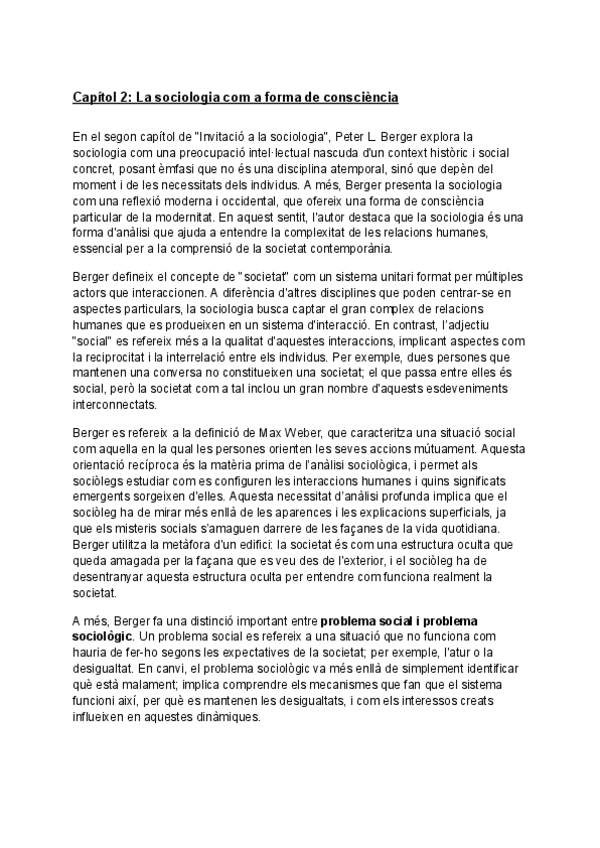 Resum "Invitació a la Sociologia" de Peter Berger por capítulos