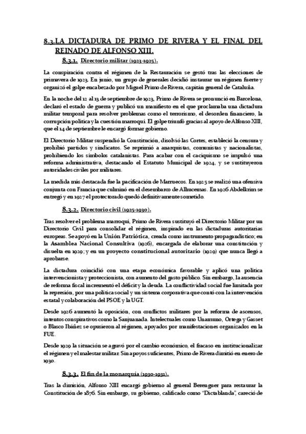 8.3. LA DICTADURA DE PRIMO DE RIVERA Y EL FINAL DEL REINADO DE ALFONSO XIII.