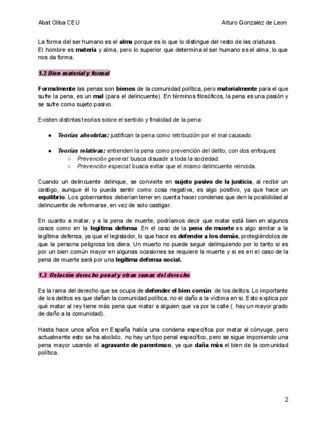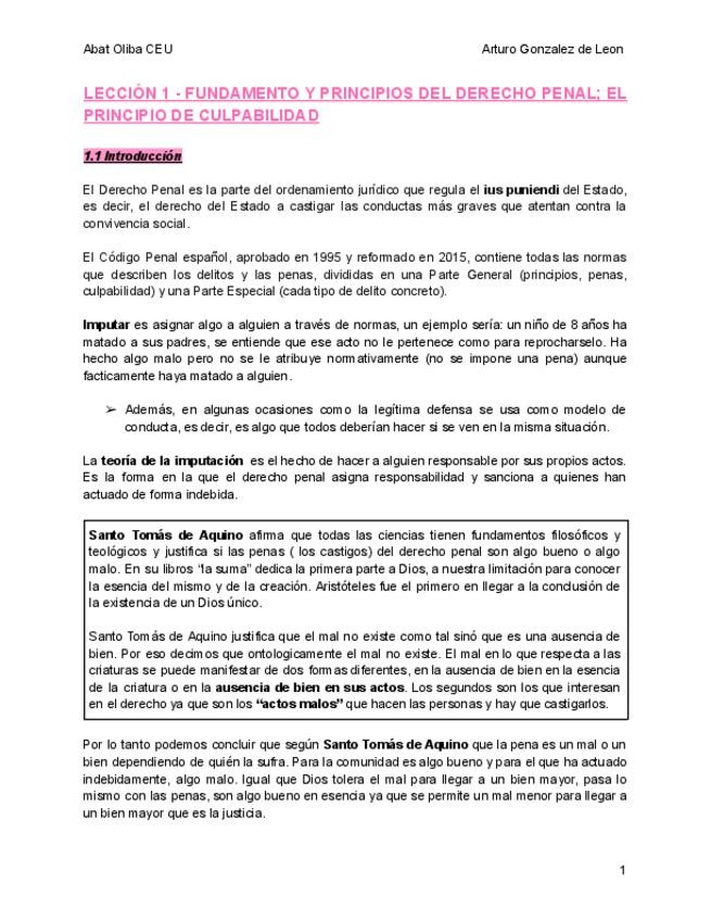 Apuntes Completos Manual Lecciones de Derecho penal// Profesor Arturo Gonzalez de León. Todo lo que entra en el examen lecciones por orden de la 1 a la 14.