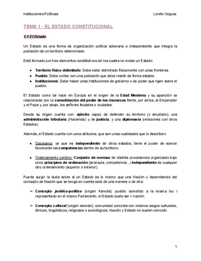 Apuntes completos todos los temas desarrollados de instituciones políticas Loreto Segura.