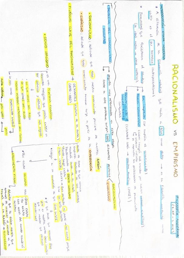 Apuntes filosofía etapa moderna, racionalismo vs empirismo, Descartes, Humo y Kant.