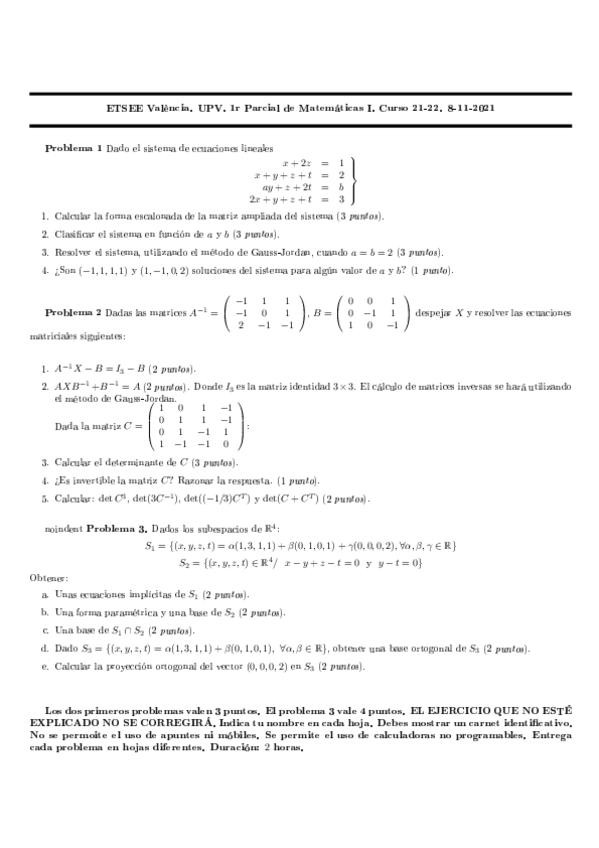 He publicado nuevos examenes de 1º Matemáticas I: Exámenes resueltos 1º parcial