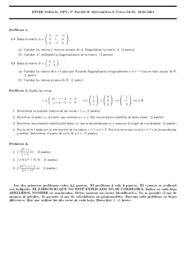He publicado nuevos examenes de 1º Matemáticas I: Exámenes resueltos 2º parcial