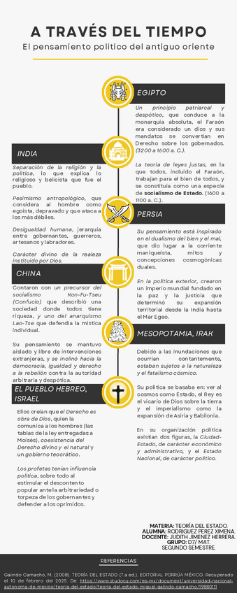 Línea del tiempo sobre el pensamiento político de en Egipto, India, Persia, China Mesopotamia y el pueblo hebreo a partir del libro "TEORÍA DEL ESTADO" de Miguel Galindo Camacho