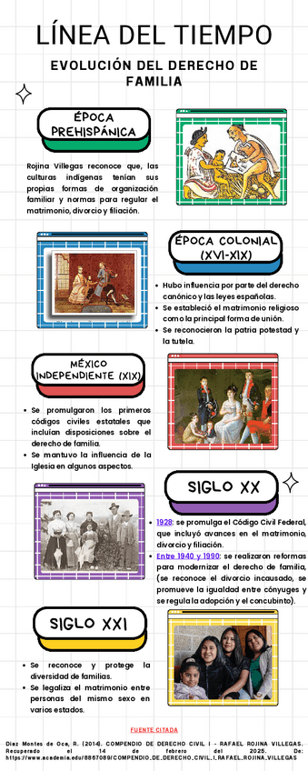 Líneas del tiempo, mapa mental y cuadro sinóptico sobre la evolución del derecho civil y familiar