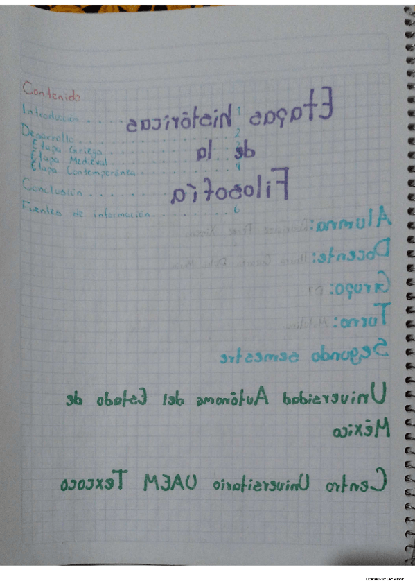 Etapa griega, medieval y contemporánea. Contiene portada, índice, introducción, desarrollo y fuentes.