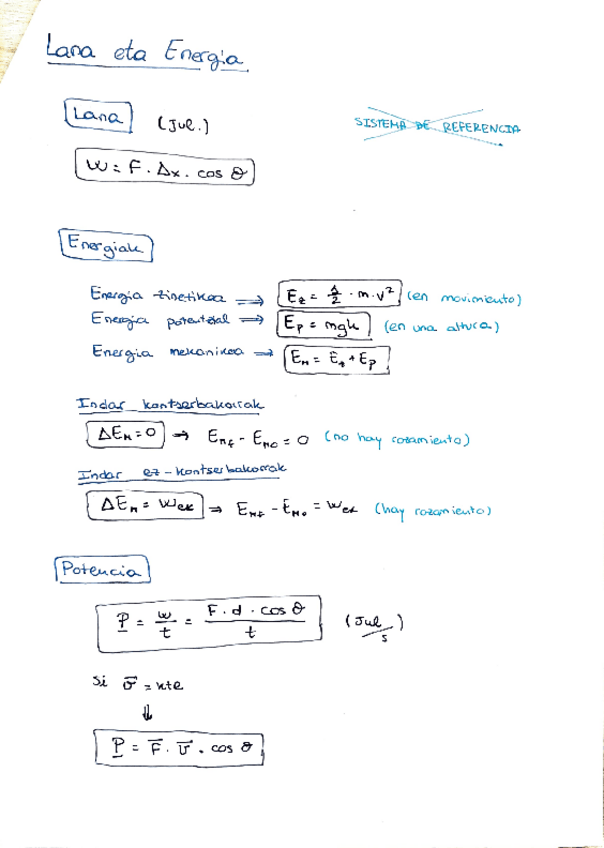 Resumen de las ecuaciones que hay en cinemática (explicaciones en euskera)