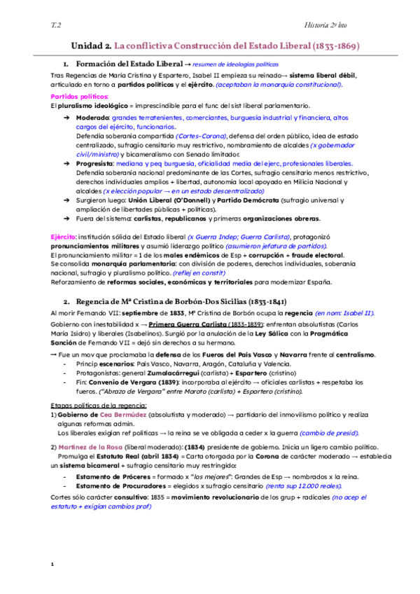 Resúmenes ampliados T.2 historia: La conflictiva construcción del estado liberal (1833-1869).
