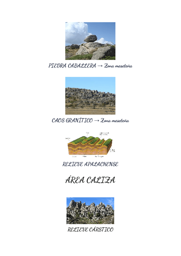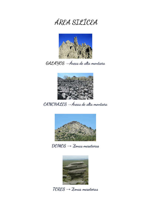 Imágenes sobre ejemplos de tipo de tierra y sus formas (área silícea, área arcillosa y área caliza)