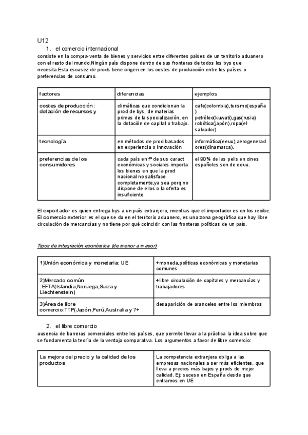 Apuntes sobre El Comercio Internacional, de la asignatura de economía.
