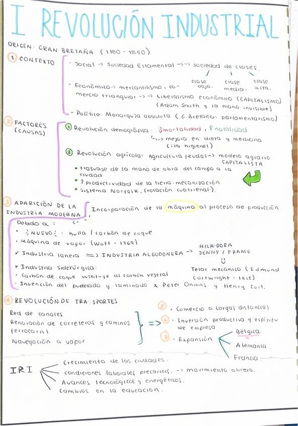Este documento presenta esquemas de ambas revoluciones industriales, junto con un cuadro comparativo y su respectivo glosario.