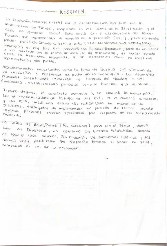 Este archivo presenta actividades resultas, esquemas sobre la Revolucion Americana, la Revolucion Francesa y la Expansion napoleónica.
