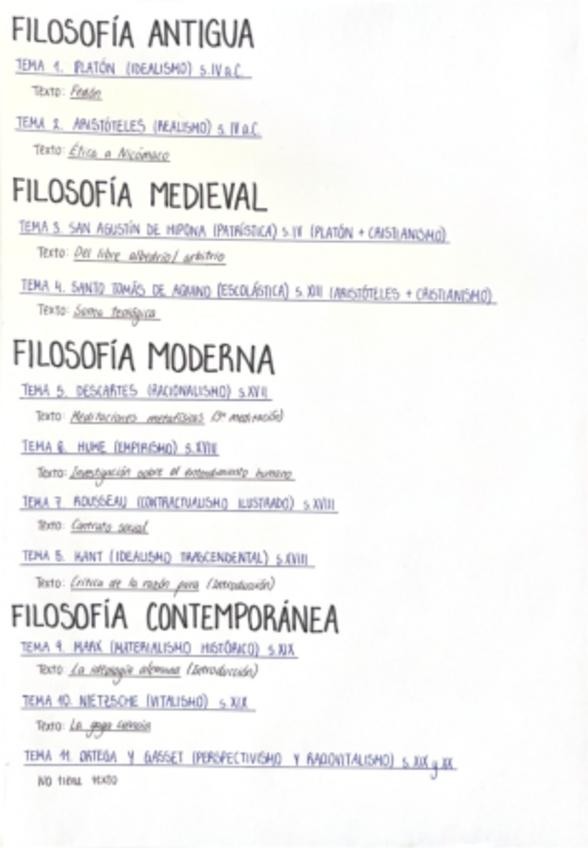 Esquema sencillo de los todos autores por etapas, con sus respectivos textos oficiales