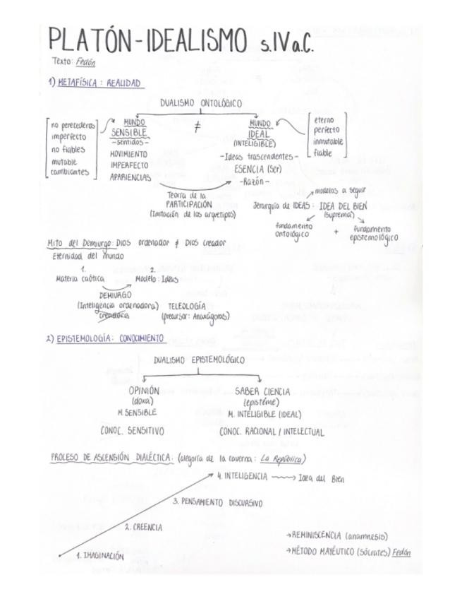 Esquema completo y claro de la filosofía de Platón, organizado por cada rama filosófica.