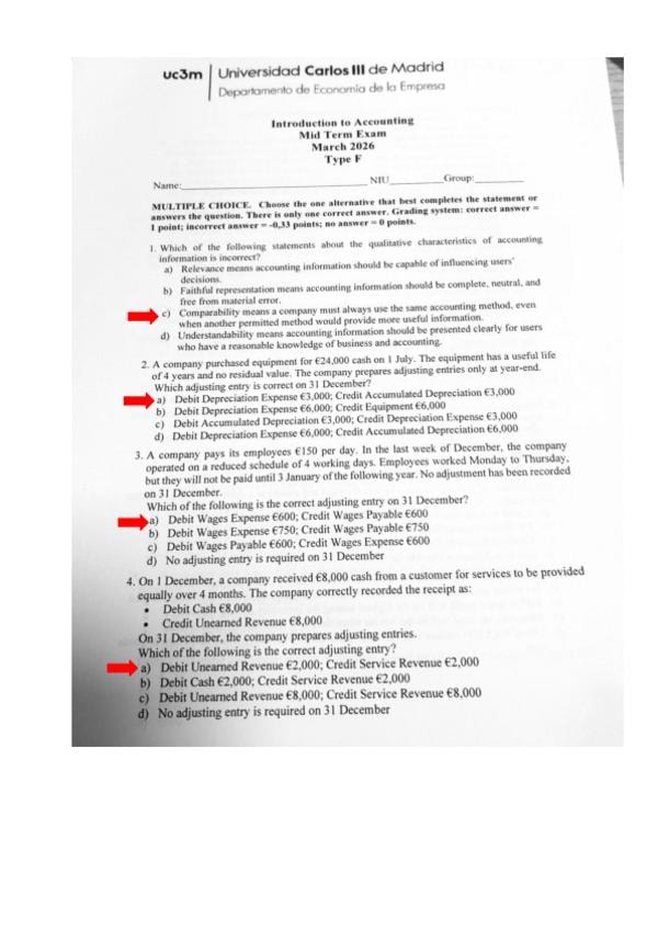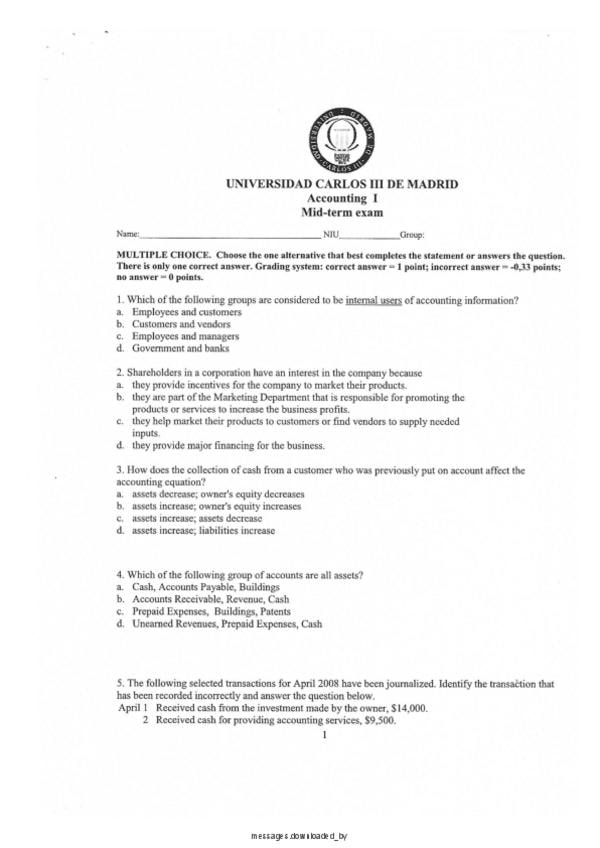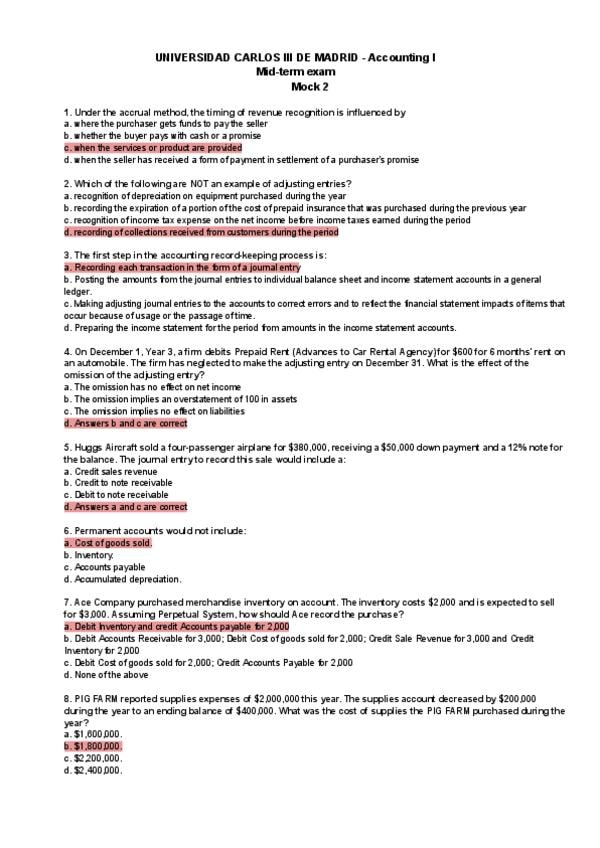 MOCK EXAM ACCOUNTING INTRODUCTION UC3M - Parciales