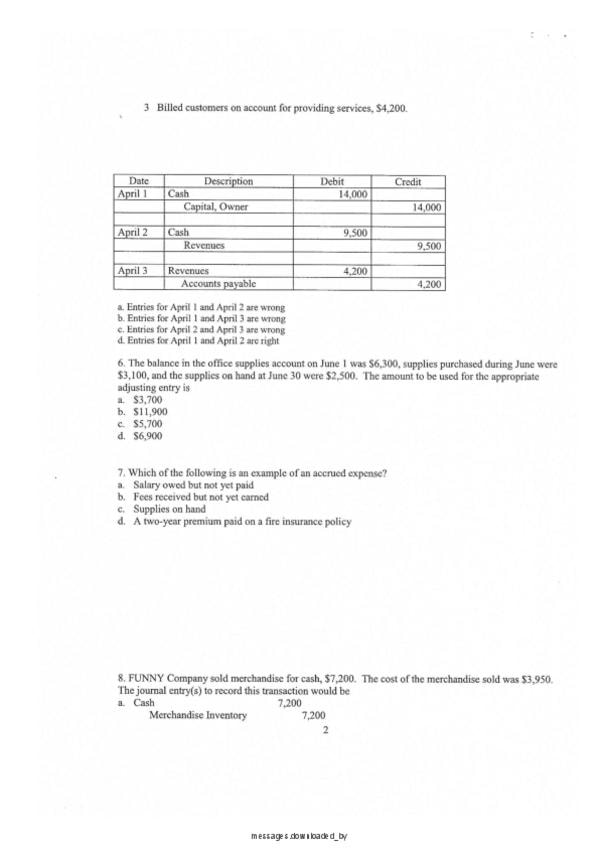 MOCK EXAM - ACCOUNTING PRINCINPLES UC3M - DADE Bilingue