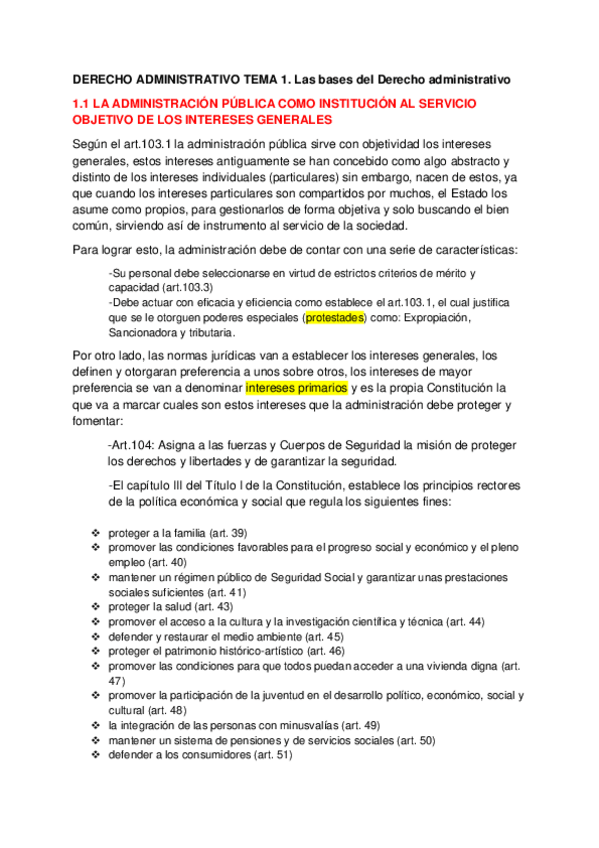 1.1 del Tema 1 de derecho administrativo (la administración pública como institución al servicio objetivo de los intereses generales)