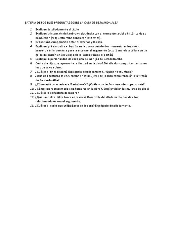 posibles preguntas la casa de bernarda alba