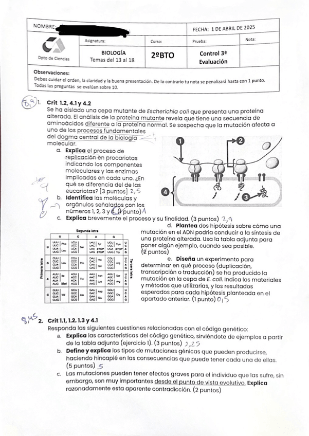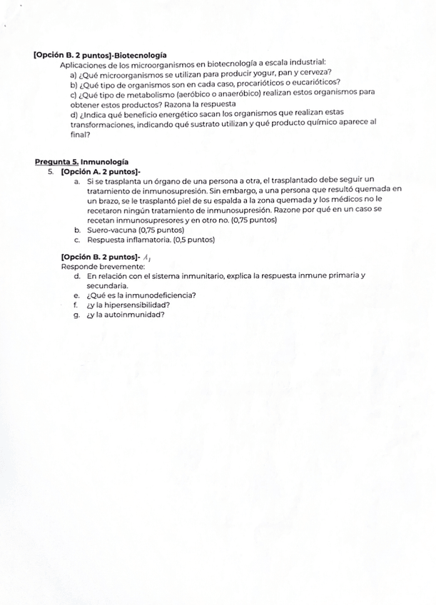Examen biología 2º Bachillerato