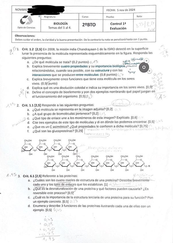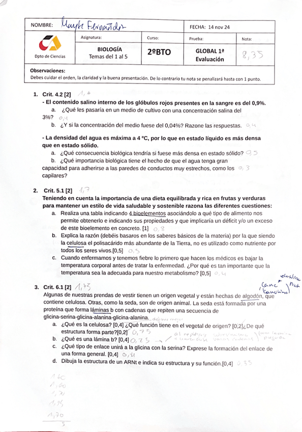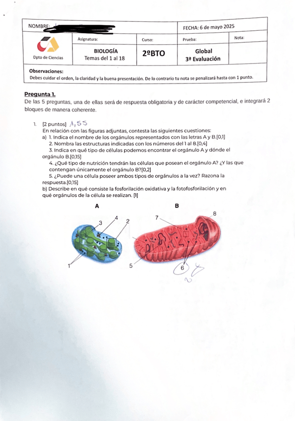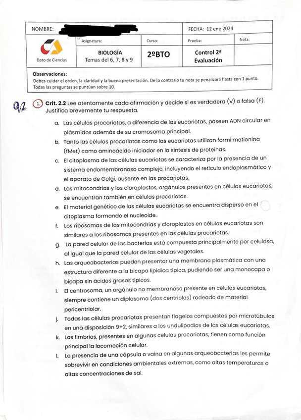 Examen parcial de biología del 1º Trimestre