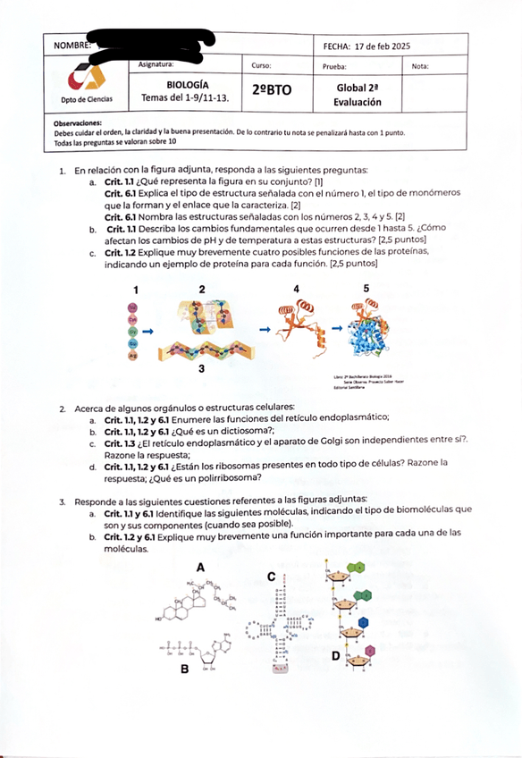 Examen parcial de biología del 2º Trimestre