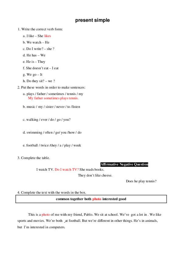 Actividades para practicar el Presente Simple
